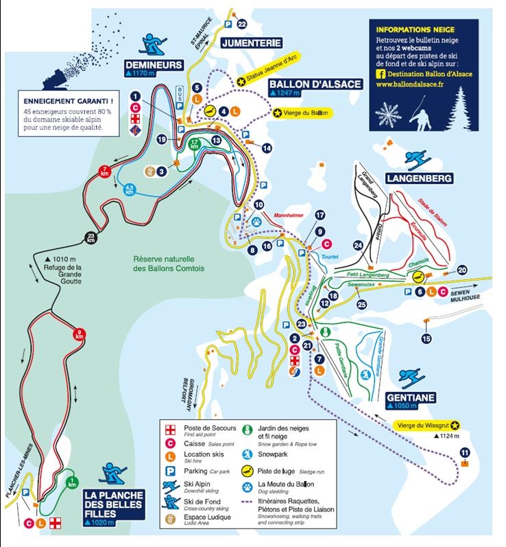 The map with the winter activities areas on the Ballon d'Alsace is downloabable here